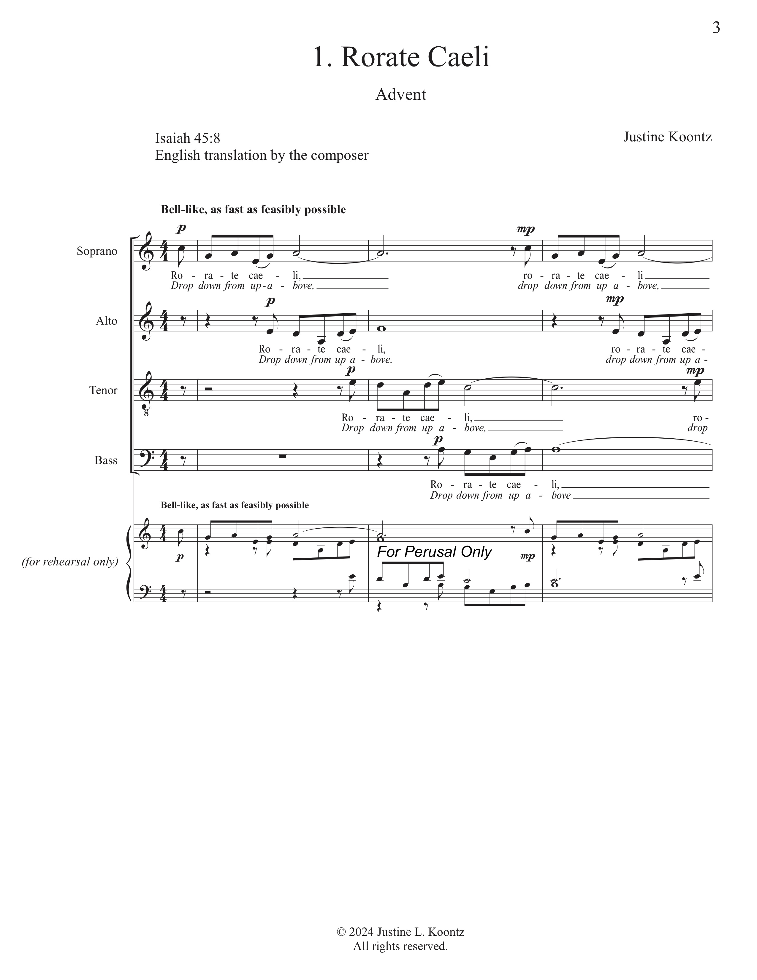 SATB a cappella Texts include Biblical verses, traditional Latin texts/chants, and authors Thomas Campion, St. Ambrose of Milan, and Julian of Norwich Language: English & Latin Level: Advanced intermediate Ranges (varies on introit): Soprano: B3-F#5 Alto: G3-C#5 Tenor: D3-F#4 Bass: F2-C#4 Duration: varies Price: this work becomes available for purchase in early 2026.